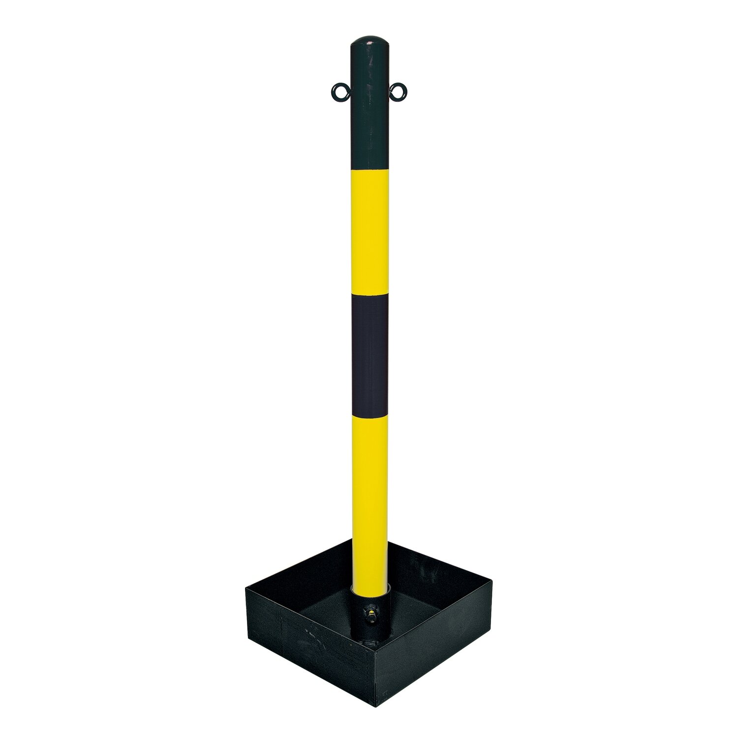 EXTERN, zware kettingstaander, 60mm Ø H 1000mm, zwart/geel met 2 kettingogen en bodemkuip zonder handvat.